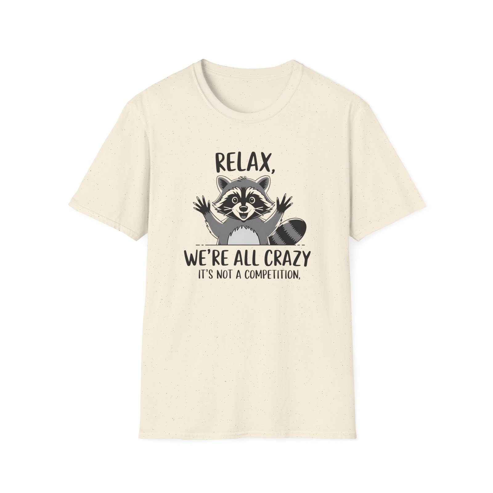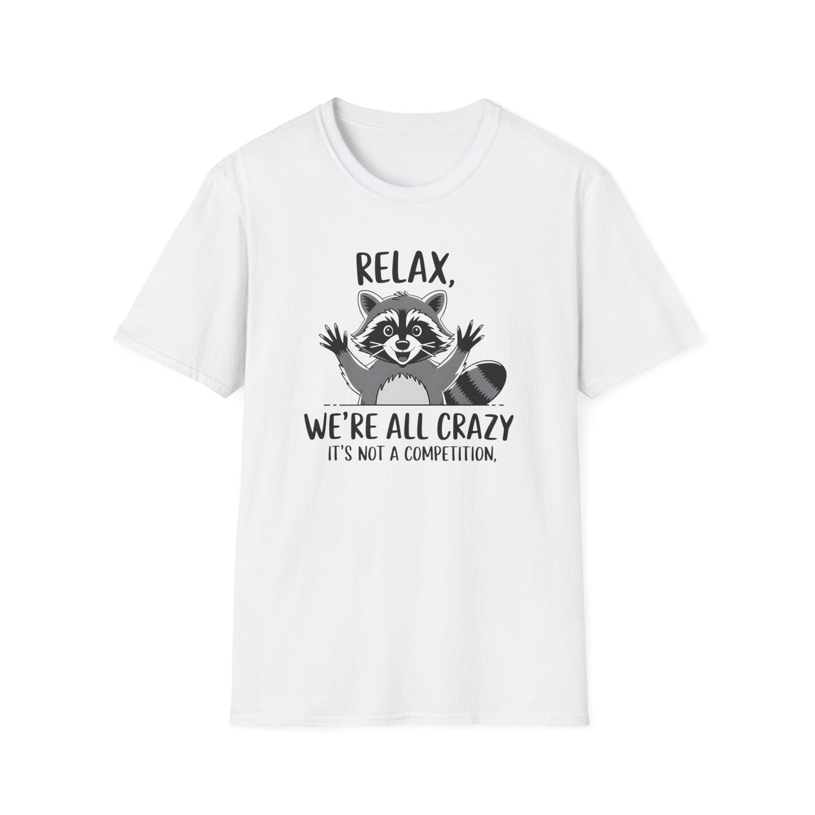 Tricou Unisex Amuzant cu Raton – “Relax, Suntem Toți Nebuni” Design Grafic